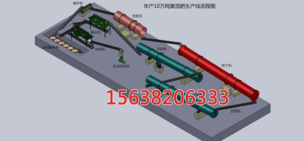 復(fù)合肥生產(chǎn)線投資少、經(jīng)濟(jì)效益好。成套設(shè)備流程布局緊湊,科學(xué)合理,技術(shù)先進(jìn)。節(jié)能降耗,無三廢排出,操作穩(wěn)定,運行可靠維修方便。原料適應(yīng)性廣,適用于復(fù)混肥料、醫(yī)藥、化工、飼料等各種原料的造粒,產(chǎn)品成粒率高。能生產(chǎn)各種濃度,多種類型(包括有機(jī)肥、無機(jī)肥、生物肥、磁化肥等)復(fù)混肥。特別是稀土,碳銨系列復(fù)混肥造粒,填補了國內(nèi)空白,居國內(nèi)前沿。復(fù)合肥生產(chǎn)線流程1、原料配料: 尿素、硝銨、 氯化銨、 硫銨...