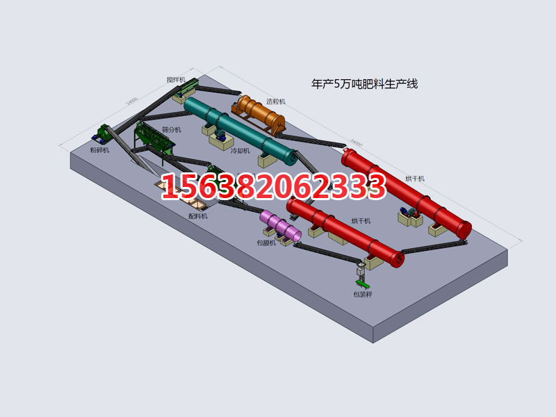 大型雞糞有機肥生產工藝流程為:有機肥原料(動物糞便、生活垃圾、枯枝爛葉、沼渣、廢棄菌種等)發(fā)酵后進入半濕物料粉碎機進行粉碎,然后加入氮磷鉀等元素(純氮、五氧化二磷、氯化鉀、氯化銨等)使所含礦物元素達到所需標準,然后有攪拌機進行攪拌,再進入造粒機制顆粒,出來后烘干,通過篩分機篩分,合格產品進行包裝 ,不合格的返回造粒機進行造粒。