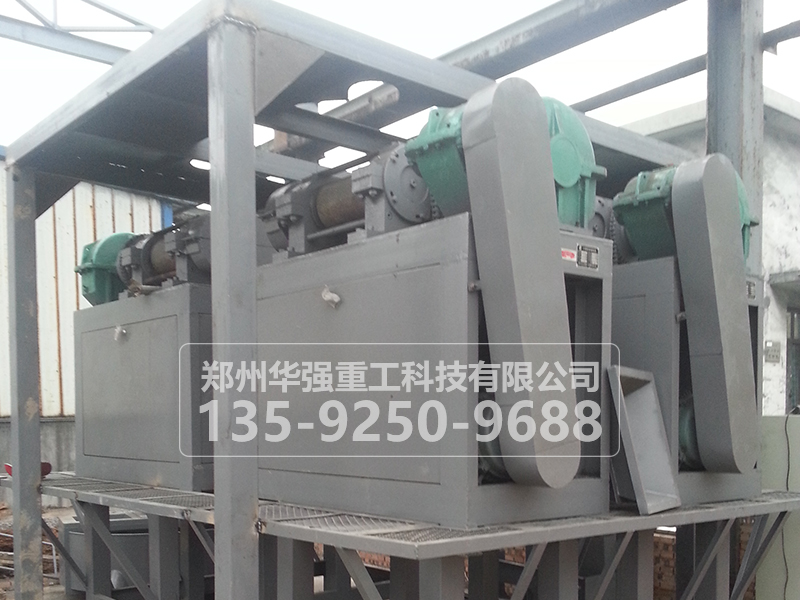 4.破碎分離工作部分:物料經(jīng)過輥擠壓后流向下側(cè)的破碎室內(nèi),經(jīng)雙軸狼牙棒的轉(zhuǎn)動(dòng),可分離出球粒與返回料。