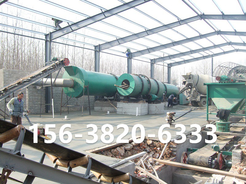 粉碎的原料進(jìn)入?yún)R總皮帶機(jī)輸送機(jī)上,輸送至轉(zhuǎn)鼓造粒機(jī)進(jìn)行造粒。需成粒的固體肥料粉粒,借助筒體的旋轉(zhuǎn)而上升,又在重力的作用下向下滾動,同時,根據(jù)原料量加入比例的黏合劑進(jìn)行造粒。物料逐層包裹在成粒核的表面,逐層增厚,逐步成粒。在以上幾種力的作用下,物料逐漸形成基核直至達(dá)到造粒要求,進(jìn)入烘干工段。