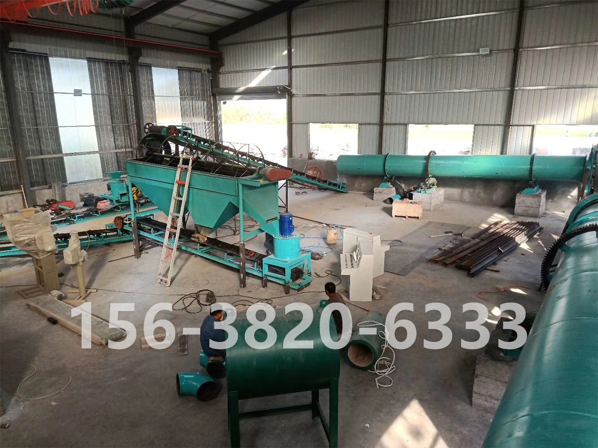 本系統(tǒng)作用是將篩分后的顆粒進(jìn)一步去除水分,達(dá)到有機(jī)肥含水率的標(biāo)準(zhǔn)要求。顆粒烘干一般采用效率較高的滾筒式烘干機(jī),烘干同時(shí)改善顆粒成型。